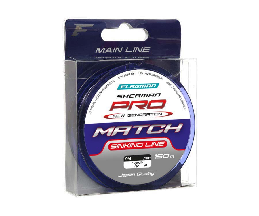 Flagman Sherman Pro Match New Generation – високоякісна тонуча жилка нового покоління, яку спеціально розроблено для матчевої ловлі та виготовлено із сучасних полімерних матеріалів. Жилка Flagman Sherman Pro Match New Generation має середню жорсткість, високу міцність, зокрема й на вузлах, вирізняється підвищеною стійкістю до стирання, мінімальним ефектом пам'яті, низькою розтяжністю, точним калібруванням та японською якістю. Темне забарвлення чудово маскує Sherman Pro Match у товщі води та не відлякує обережну рибу. Жилки Sherman Pro Match New Generation випускають у розмотуванні 150 метрів і найбільш затребуваних діаметрах.